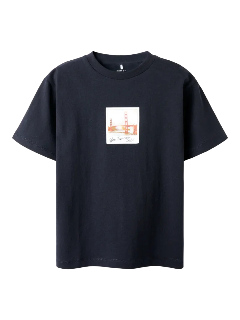 Størrelserne op til 18 måneder har trykknapper ved skulderen, så T-shirten er nem at få på.