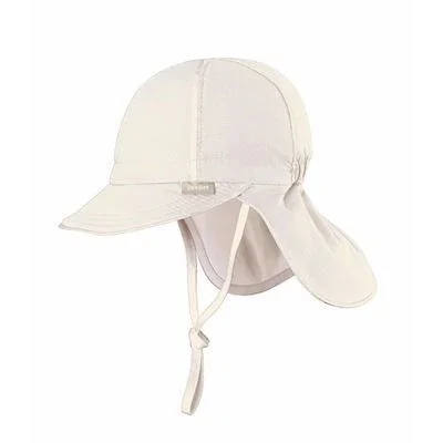 Super solhat med skygge foran og lang skygge i nakken. Der er elastik i nakken så den sidder godt på barnet når de leger i solen.