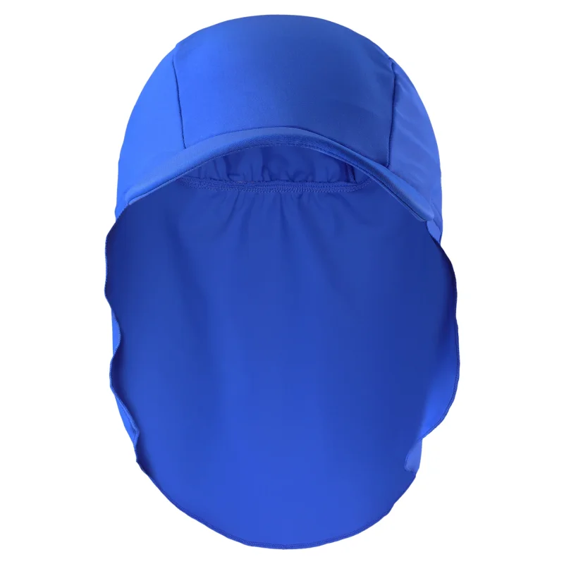 Denne solhat til små og større børn er fremstillet i SunProof-materiale med solfaktor 50+. Materialet er også åndbart og fleksibelt. Den beskyttende hat er designet til længere tids leg i solen: Skyggen og det lange bagstykke beskytter barnets sarte hud og skygger for ansigt og hals, mens barnet bygger sandslotte.