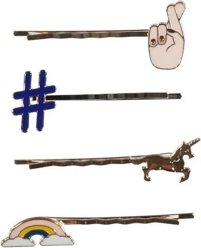 Fine hårnålem ed små, sjove emojis. Sættet består af fire hårnåle.