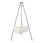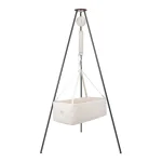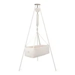 Stativet er monteret med tre bevægelige og skridsikre fødder med gummibelægning.Der medfølger en Moonboon Fjeder til Vugge og Tvillingeslyngevugge som standard. Fjederen kan benyttes uden Vuggemotor, fra barnet vejer 3-12 kg. Moonboons Fjeder + til Vugge og Tvillingeslyngevugge kan tilkøbes og benyttes til børn, som vejer 12-15 kg. Ønsker I at benytte Vuggen med en Vuggemotor, kan denne benyttes, fra barnet vejer 3-12 kg.