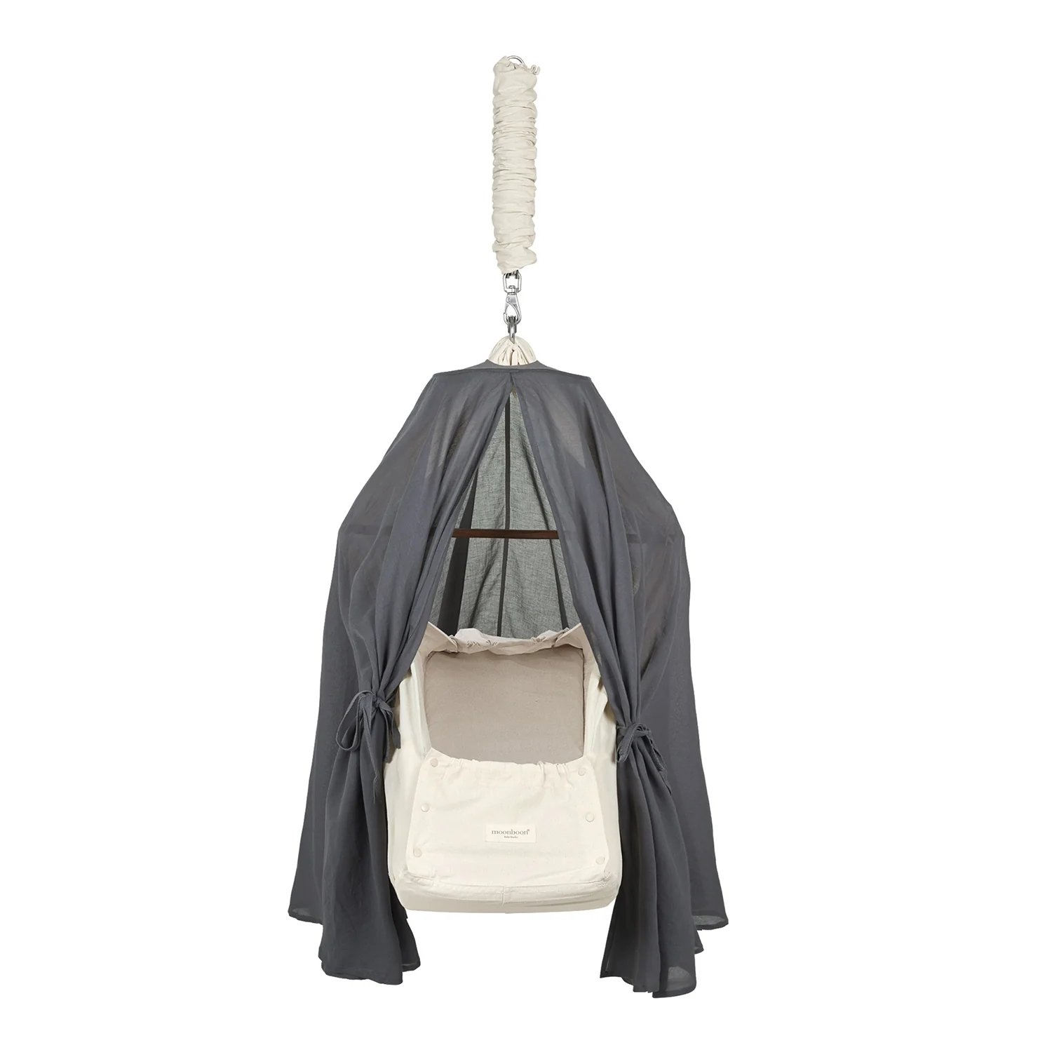 Baldakinen er forvasket, så den bevarer sin flotte facon, og kan nemt monteres på din Moonboon vugge eller slyngevugge.