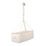 Moonboon Vugge/Cradle + Vuggemotor ConnectMoonboons Vugge er en gamechanger inden for funktionelle søvnprodukter, da Vuggen kombinerer muligheden for at sove på et fladt og fast underlag med de beroligende vuggende fordele, som er kendt fra Slyngevuggen. Vuggen er med flad bund og langt liggemål til Moonboons fjeder og vuggemotorsystem. Vuggen er designet til børn, som vejer 3-12 kg og har behov for Slyngevuggens beroligende effekt, men befinder sig bedre i en mere rummelig og flad vugge.Vugge1 stk. GOTS-certificeret vugge med quiltet betræk i harlekindesign i 100 % økologisk bomuldslærred.