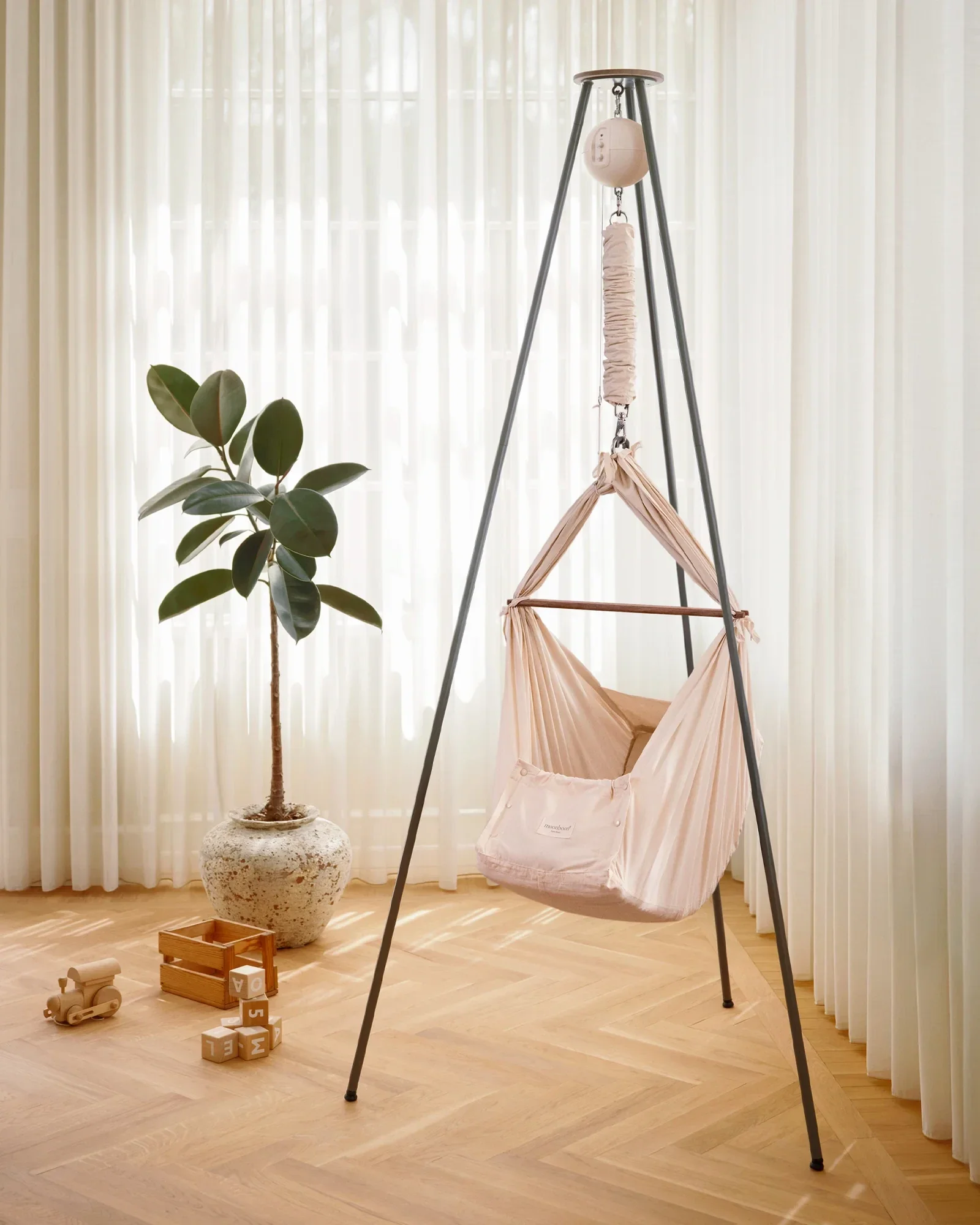 Moonboon Slyngevugge + Vuggemotor Connect + StativSlyngevugge