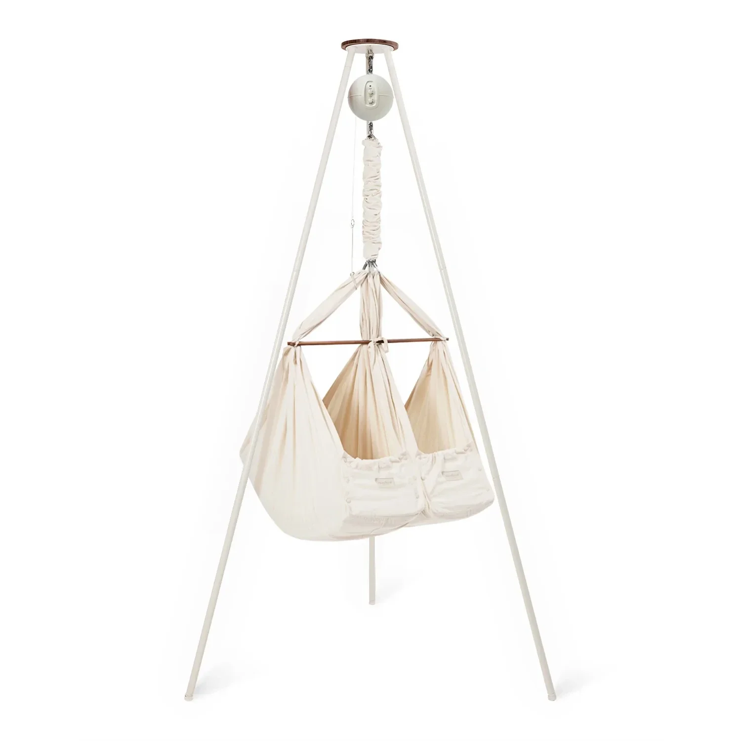 Moonboon Tvillingevugge + Vuggemotor Connect + StativTvillingeslyngevuggen giver tvillinger et vuggende og beroligende rum, der skaber ro og bedre søvn. Hjælper med at synkronisere børnenes søvn. Tvillingeslyngevuggen efterligner de lette, vuggende bevægelser, som børnene kender fra mors mave, og er designet således, at der ikke behøves modvægt, når kun det ene barn ligger i den.Tvillingeslyngevugge1 stk. GOTS-certificeret Tvillingeslyngevugge i 100 % økologisk bomuld