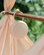En trådløs, let og transportabel højttaler med indbyggede lyde og natlampe. Med USB-oplader og silikonestrop til nem montering. Anvendes uden app og smartphone.
