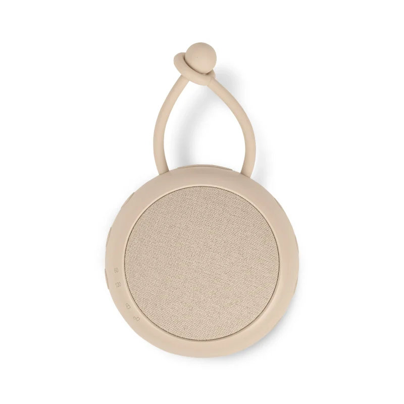En trådløs, let og transportabel højttaler med indbyggede lyde og natlampe. Med USB-oplader og silikonestrop til nem montering. Anvendes uden app og smartphone.