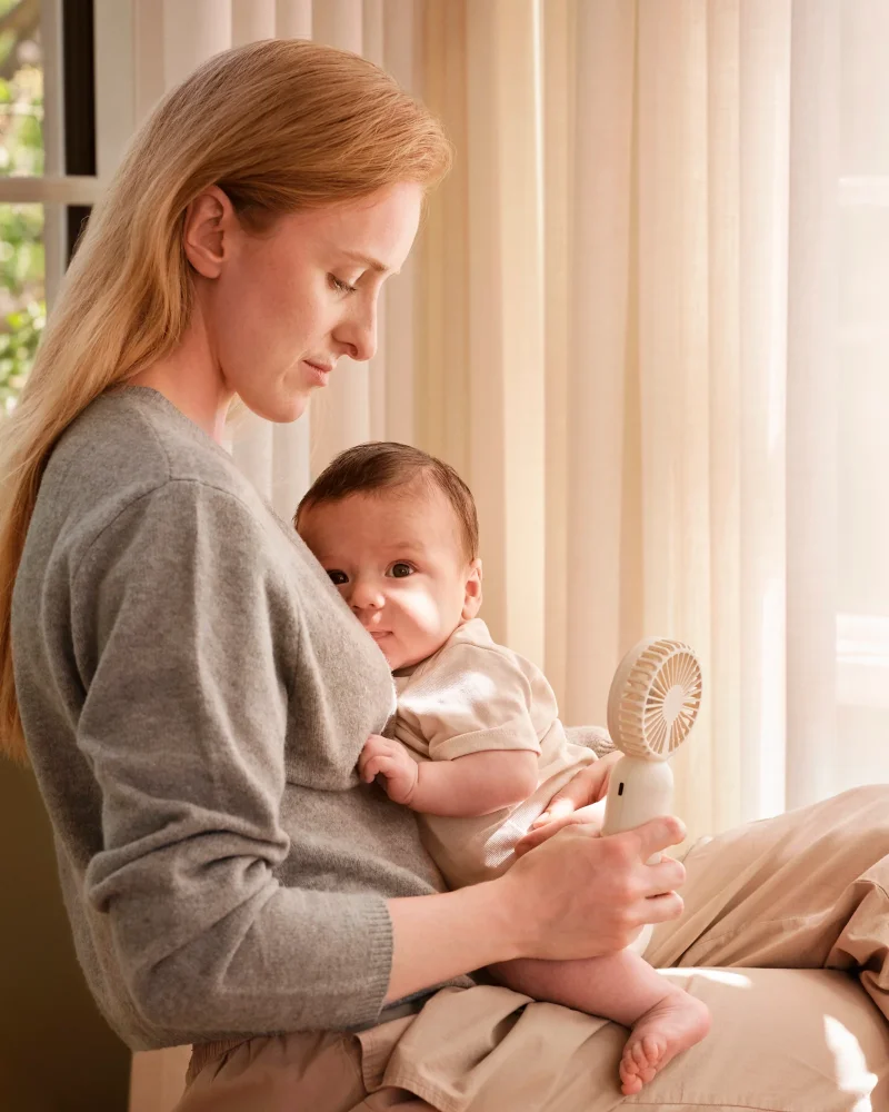 Mini ventilatoren kan både holdes i hånden eller sættes fast på forskellige overflader fra det bløde stof i vuggen til barnevognsrammen, og kan derfor bruges overalt. Mini ventilatoren kan også nemt oplades, så du får en ledningsfri og ubekymret oplevelse.