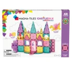 Alle dele er kompatible med og supplerer alle andre MAGNA-TILES® sæt. MAGNA-TILES® dele er lavet af fødevaregodkendt, ikke-giftig MABS-plast, fri for BPA, phthalater og latex. MAGNA-TILES®’ signatur-gitter forhindrer revner, mens fastgørelsesnitter holder magneterne sikre. Magnetbrikkerne er nemme at adskille for sikker, frustration-fri bygning. MAGNA-TILES® giver meningsfuld leg, der er sjov og engagerende, erfaringsbaseret, børnestyret og udviklingsmæssigt fremmende. MAGNA-TILES® sæt kan leges og nydes uden instruktioner eller voksenhjælp. Indhold 48 magnetiske dele 1 vindebro 1 dragefigur 1 kongelig figur 2 spiraltrapper 2 balkoner 4 vinduer 2 ligesidede trekanter (glitter) 2 kvarte cirkler 5 ligebenede trekanter 20 firkanter (10 glitter, 10 standard) 2 microMAGS ligesidede trekanter 4 microMAGS firkanter 2 microMAGS ligebenede trekanter Med MAGNA-TILES® kan der konstrueres og bygges værker, hvor det kun er fantasien, som sætter grænsen. Der kan bygges både højt, lavt, småt eller stort. MAGNA-TILES® giver meningsfuld leg! Og da MAGNA-TILES® er gennemsigtige, kan der også leges med lyset indvirkning og synlighed igennem byggeriet mange farver. Der kan bruges både et kunstigt og naturligt lys til at skabe et lysindfald igennem dit byggeri. Eller du kan prøve at sætte de forskellige farver foran dit ene øje eller begge øjne og se hvordan rummet, en ting, en legekammerat eller naturen ser ud igennem de forskellige byggebrikkers farver – er der mon forskel på det, du ser igennem en gul, grøn el. rød farve? MAGNA-TILES® kan også påsættes en whiteboardtavle, hvor der kan dannes ord og regnestykker med brikkerne! Eller de mindre børn kan lære alle bogstaverne og tallene at kende på en nem og sjov måde. Byggebrikkerne fra MAGNA-TILES® er magnetiske på alle deres sider og kanter, så de nemt klikkes sammen og faktisk helt af sig selv. MAGNA-TILES® er konstrueret uden magnetiske poler, som gør let, selv for mindre børn at bygge. Med MAGNA-TILES® er der ingen rigtige eller forkerte måder at bruge dem på og alle MAGNA-TILES® brikker er kompatible og er designet til at vokse med barnet og deres fantasi MAGNA-TILES® kan fås i forskellige byggelegesæt, som hver især, giver børn en, hands on erfaring med flere konstruktions -og byggeprojekter. MAGNA-TILES® sættene kommer i mange forskellige farver, former, størrelser og temaer, så der kan både tilføjes figurer, dyr, biler, spejle og færdige del-konstruktioner, så som trapper, balkon, veje m.m til byggeriet og legen. MAGNA-TILES® er velkendt fra både institutioner og skoler og er elsket af både børn og voksne.