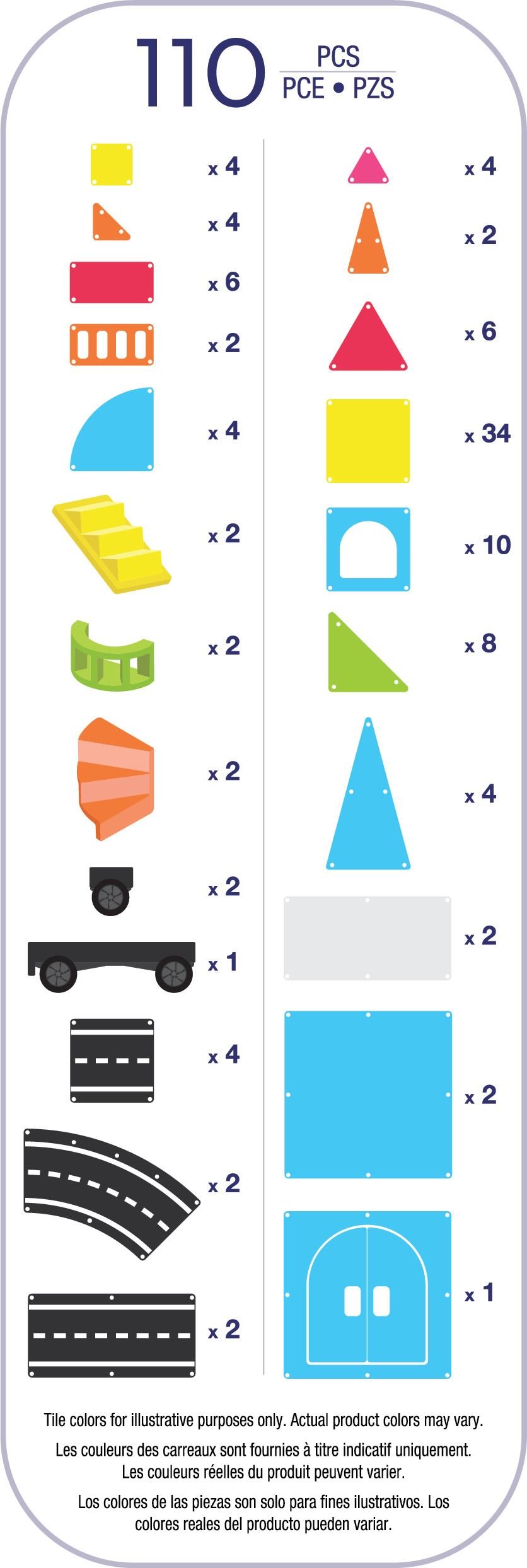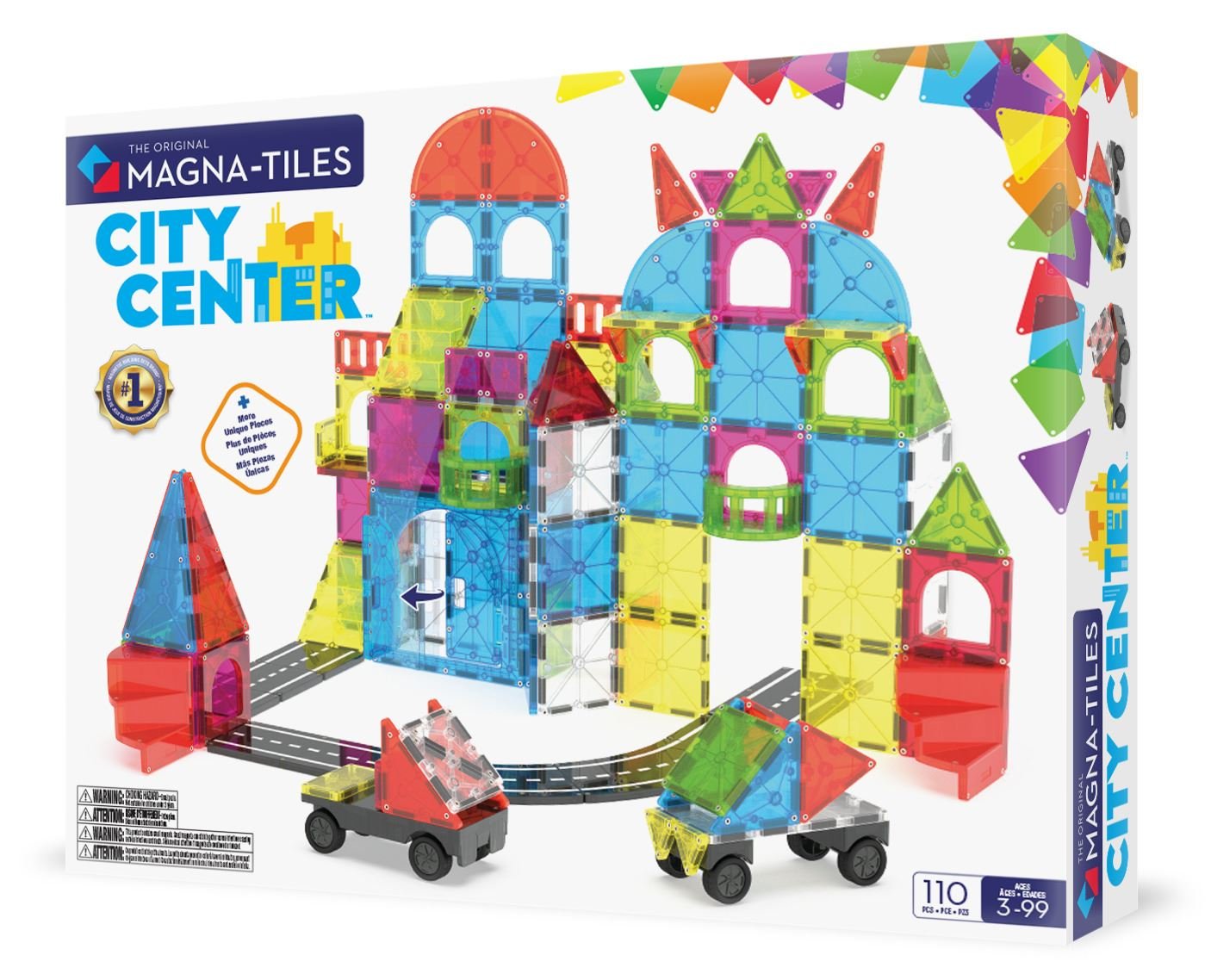 Byg din egen store magnetiske bymidte med veje, biler og bygninger. Slip fantasien løs med MAGNA-TILES by-legesæt med 110 dele. Fra 3+ år.