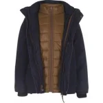 Smart og funktionel 3-i-1 jakke i retrostil i farven 'Navy'. Jakken består af to dele, hvor den yderste del er en tynd lærredsjakke med lynlåslukning, fire frontlommer, aftagelig hætte samt tætsluttende ribafslutninger ved ærmerne. Den inderste del er en håndforet dunjakke med down touch padding, som giver ekstra blødhed og en dunlignende følelse. Dunjakken har desuden en regulerbar snøre forneden samt en lille krave. Brug jakken med begge lag eller lyn dunjakken af og på efter behov.