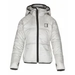 Let og sporty jakke i farven 'Powder'. Jakken har aftagelig hætte, lynlåslukning, sidelommer, hul til tommelfinger ved ærmeafslutning samt smarte sorte sportsbånd langs kanten. Jakken er vandafvisende og foret med flat padding, som giver god blødhed, lethed og holder på varmen.