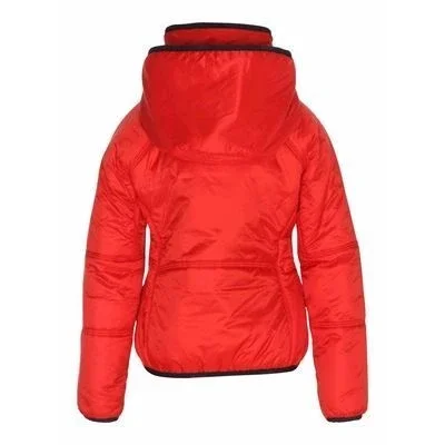 Let og sporty jakke i farven 'True Red'. Jakken har aftagelig hætte, lynlåslukning, sidelommer, hul til tommelfinger ved ærmeafslutning samt smarte sorte sportsbånd langs kanten. Jakken er vandafvisende og foret med flat padding, som giver god blødhed, lethed og holder på varmen.