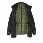 Smart og funktionel 3-i-1 jakke i retrostil i farvekombinationen 'Shadow Camo'. Jakken består af to dele, hvor den yderste del er en tynd lærredsjakke med lynlåslukning, tre frontlommer, hætte der kan skjules i kraven samt tætsluttende ribafslutninger ved ærmerne og snører i taljen. Den inderste del er en vandafvisende dunjakke foret med flat padding, som giver god blødhed, lethed og holder godt på varmen. Brug jakken med begge lag eller lyn dunjakken af og på efter behov og humør.