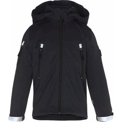 Sporty softshell jakke i farven 'Almost Black' med en blød inderside i fleece, justerbar, aftagelig hætte og lynlåslukning på fronten. Jakken har mange smarte detaljer såsom adskillelige lommer, velcro patches, reflekser samt elastik ved ærmeafslutning og justerbare snører i bunden. En softshell jakke fra molo er oplagt til overgangsperioderne, da selve materialet både er vandtæt og åndbart.