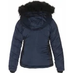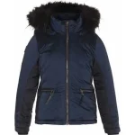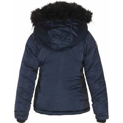 Smart bikerinspireret jakke i farven 'Night Sky'. Jakken har aftagelig hætte med faux fur pelskant (der også kan tages af), høj krave, der slutter tæt om halsen og varmer, lynlåslukning, frontlommer, tætsluttende ribafslutninger ved ærmerne samt et skjult vindfang, der sidder på jakkens inderside. Jakken er vandafvisende og håndforet med pearl padding, som giver ekstra blødhed og en dunlignende følelse.