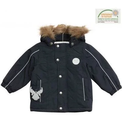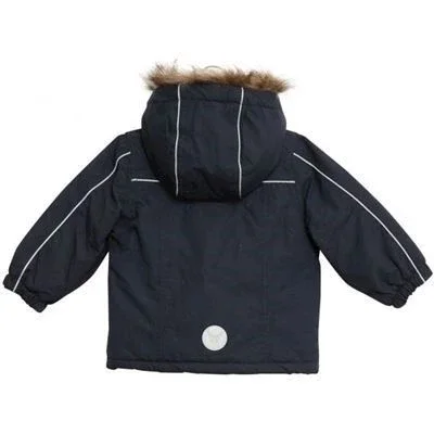 Varm jakke i åndbart, vind- og vandtæt funktionsmateriale. Aftagelig, foret hætte med fake pelskrave der let kan knappes af og på.