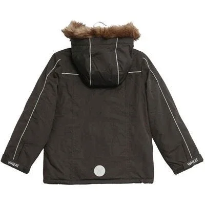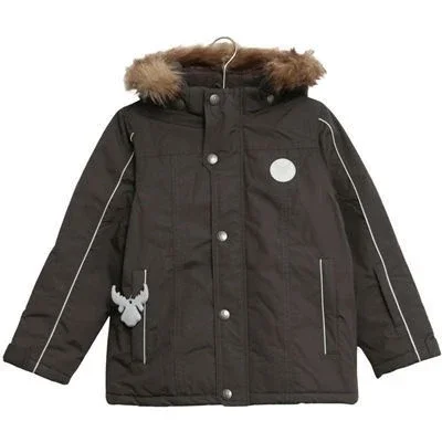 Varm jakke i åndbart, vind- og vandtæt funktionsmateriale. Aftagelig, foret hætte med fake pelskrave der let kan knappes af og på.