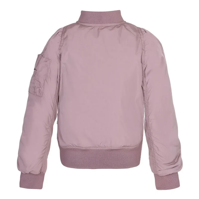 Sporty, nougatfarvet bomber jakke med lynlås ned langs fronten, lommer i siden og på det ene ærme samt rib ved hals og bund. Dette produkt har en vandafvisende PFC-fri imprægnering (indeholder f.eks. ikke PFOS, PFOA og lignende).