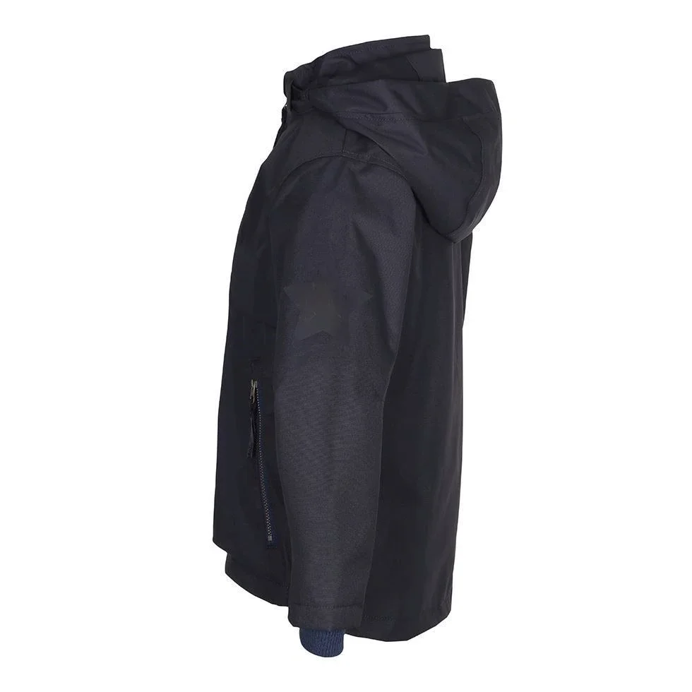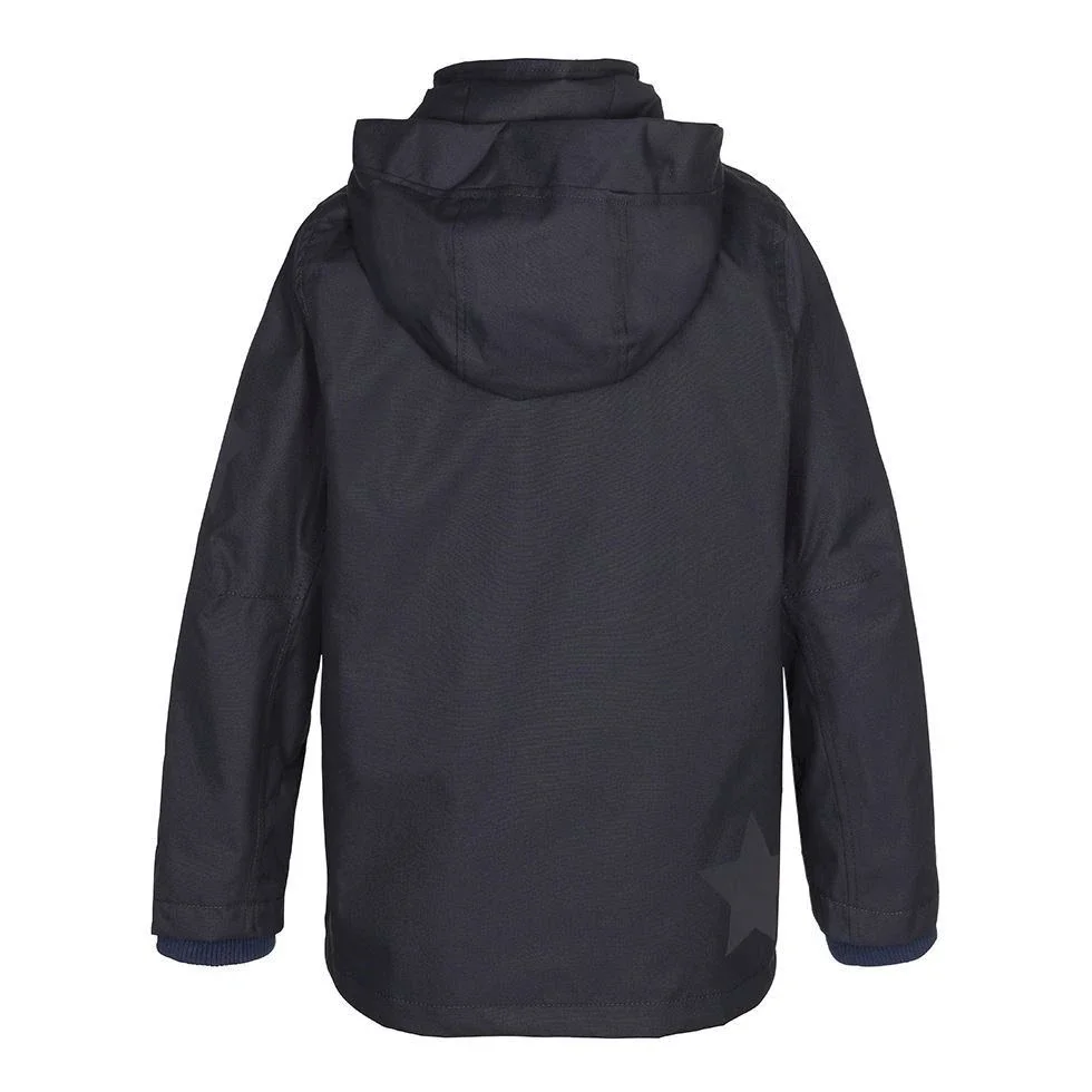 Sporty og funktionel jakke i sort med aftagelig hætte, lynlås ned langs fronten, lommer på forsiden, rib ved ærmeafslutning samt Molo's velkendte refleksstjerne på den ene overarm og nederst på ryggen. Jakken passer til det meste vejr, da selve materialet er vandtæt, åndbart og har tapede sømme. Dette produkt har en vandafvisende PFC-fri imprægnering (indeholder f.eks. ikke PFOS, PFOA og lignende). Vandsøjletryk: 5.000 mm. Åndbarhed: 5.000 g/m2/24t