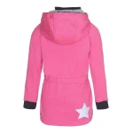 Pink, parkainspireret softshelljakke med elastisk talje. Jakken har desuden aftagelig hætte, lynlås ned langs fronten, rib ved ærmeafslutning samt Molo's velkendte stjernerefleks bagpå. En softshell jakke fra Molo er et oplagt valg til overgangsperioderne, da selve materialet er vindtæt, vandtæt og åndbart. Dette produkt har en vandafvisende PFC-fri imprægnering (indeholder f.eks. ikke PFOS, PFOA og lignende). Vandsøjletryk: 8.000 mm. Åndbarhed: 3.000 g/m2/24t