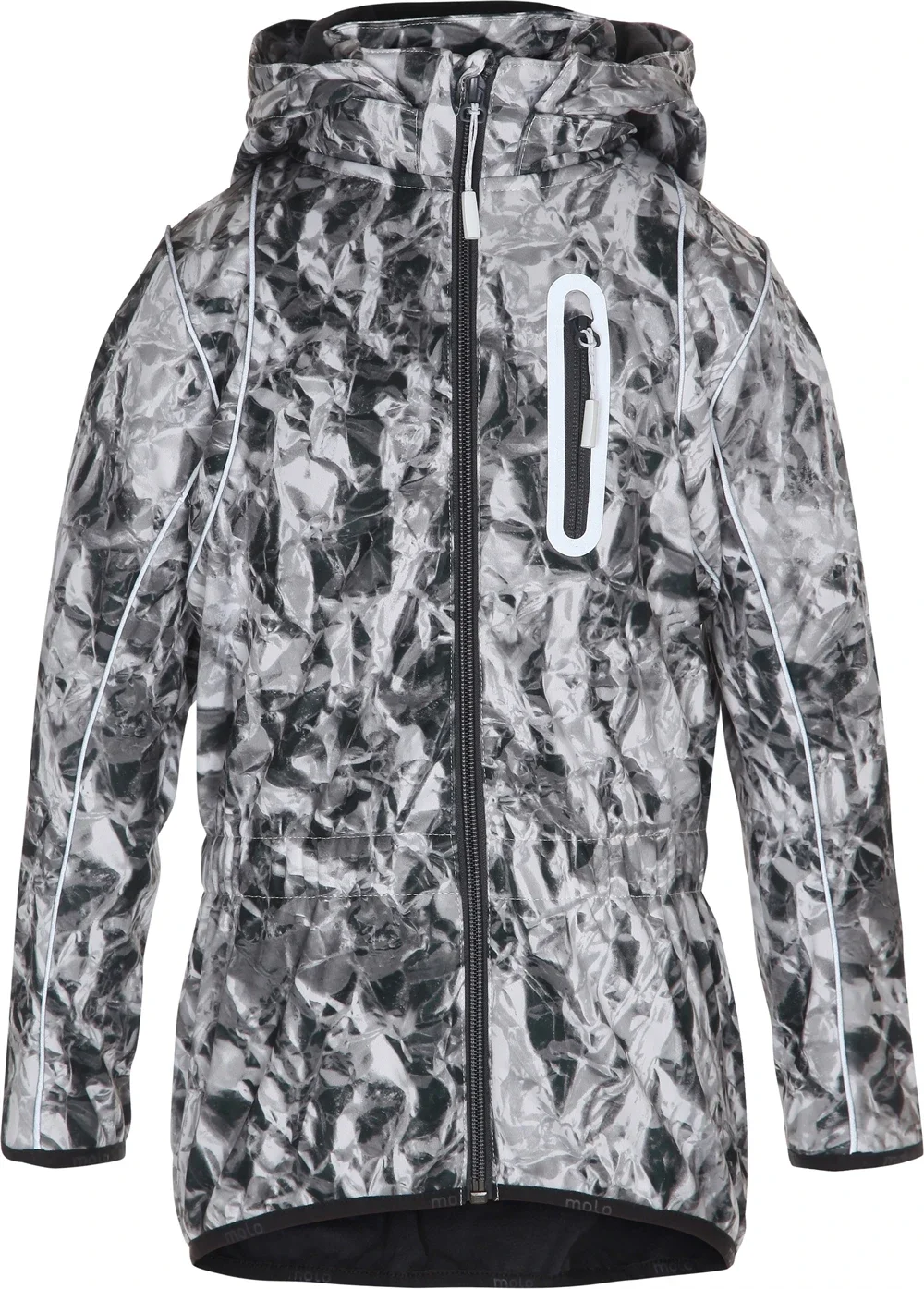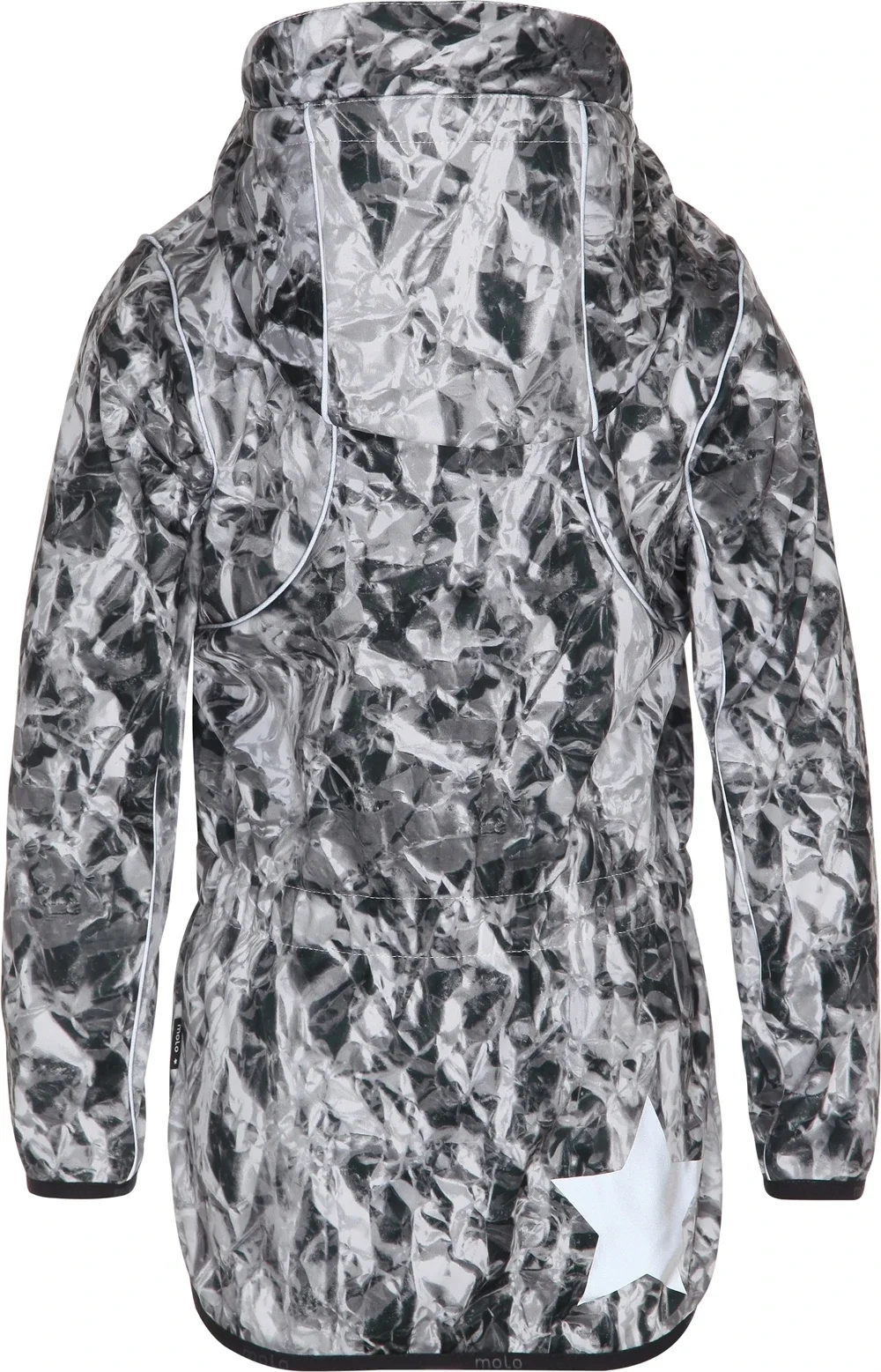 Pink, parkainspireret softshelljakke med elastisk talje. Jakken har desuden aftagelig hætte, lynlås ned langs fronten, rib ved ærmeafslutning samt Molo's velkendte stjernerefleks bagpå. En softshell jakke fra Molo er et oplagt valg til overgangsperioderne, da selve materialet er vindtæt, vandtæt og åndbart. Dette produkt har en vandafvisende PFC-fri imprægnering (indeholder f.eks. ikke PFOS, PFOA og lignende). Vandsøjletryk: 8.000 mm. Åndbarhed: 3.000 g/m2/24t