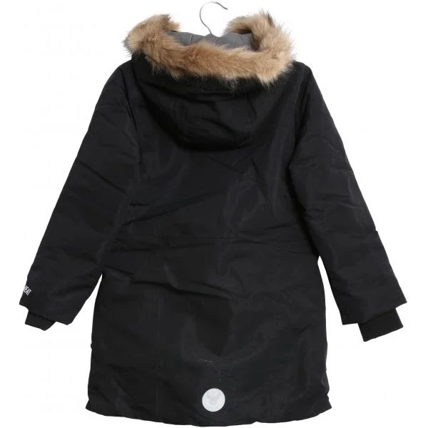 Varm jakke i åndbart, vind- og vandtæt funktionsmateriale. Aftagelig, foret hætte med fake pelskrave der let kan knappes af og på.
