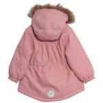 Varm jakke i åndbart, vind- og vandtæt funktionsmateriale. Aftagelig, foret hætte med fake pelskrave der let kan knappes af og på. justerbar elastik i taljen og elastik i ærmerne. Mange reflekterende detaljer.