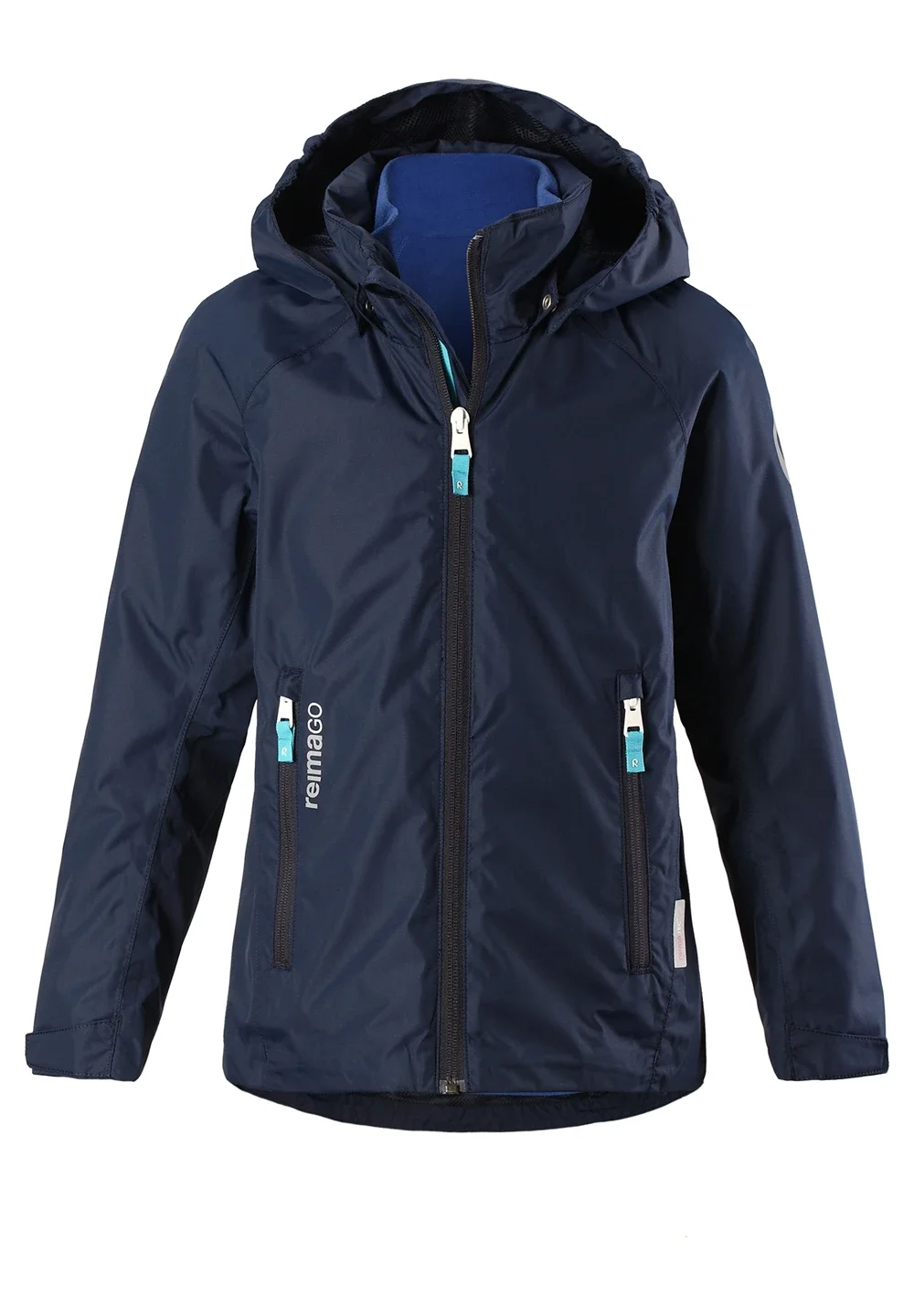 Forestil dig: Denne utroligt praktiske jakke har tre muligheder i et stykke tøj! Denne Reimatec-jakke til forår og efterår til børn har en aftagelig indvendig fleecetrøje! Jakkens yderste lag er fremstillet i et fuldstændig vand- og vindtæt materiale, som også er åndbart. Sømmene er tapede vandtætte. På varme dage kan du gøre jakken lettere ved at tage den indvendige fleecejakke af. Og når det er tørvejr, kan den bløde og lette fleecetrøje bruges alene og give varme på udflugter i det fri. Sikken funktionel jakke – synes du ikke? Jakken kan justeres i underkanten, så pasformen bliver god og individuel. Den aftagelige hætte beskytter mod kølige vinde, og i lynlåslommerne opbevares mobiltelefon og nøgler sikkert. Sporty, kort model i sæsonens farver med praktiske detaljer.