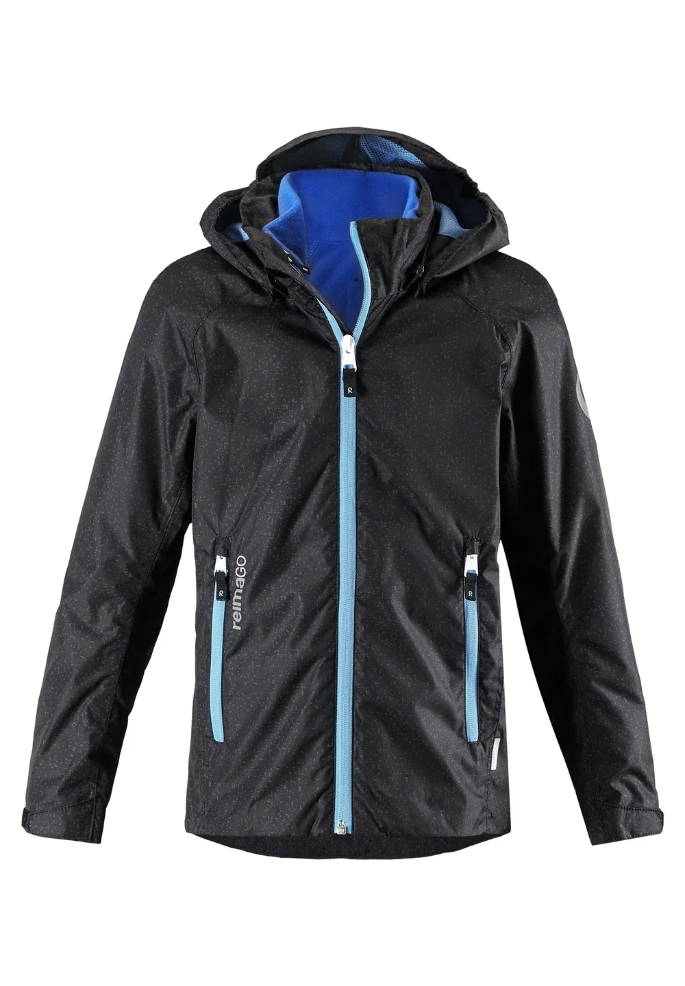 Forestil dig: Denne utroligt praktiske jakke har tre muligheder i et stykke tøj! Denne Reimatec-jakke til forår og efterår til børn har en aftagelig indvendig fleecetrøje! Jakkens yderste lag er fremstillet i et fuldstændig vand- og vindtæt materiale, som også er åndbart. Sømmene er tapede vandtætte. På varme dage kan du gøre jakken lettere ved at tage den indvendige fleecejakke af. Og når det er tørvejr, kan den bløde og lette fleecetrøje bruges alene og give varme på udflugter i det fri. Sikken funktionel jakke – synes du ikke? Jakken kan justeres i underkanten, så pasformen bliver god og individuel. Den aftagelige hætte beskytter mod kølige vinde, og i lynlåslommerne opbevares mobiltelefon og nøgler sikkert. Sporty, kort model i sæsonens farver med praktiske detaljer.