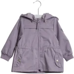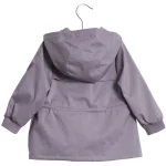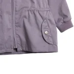 Fin jakke med aftagelig hætte, der kan justeres efter behov. Jakken har en justerbar elastik rundt i taljen, som sikre en god pasform.