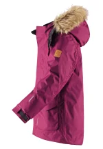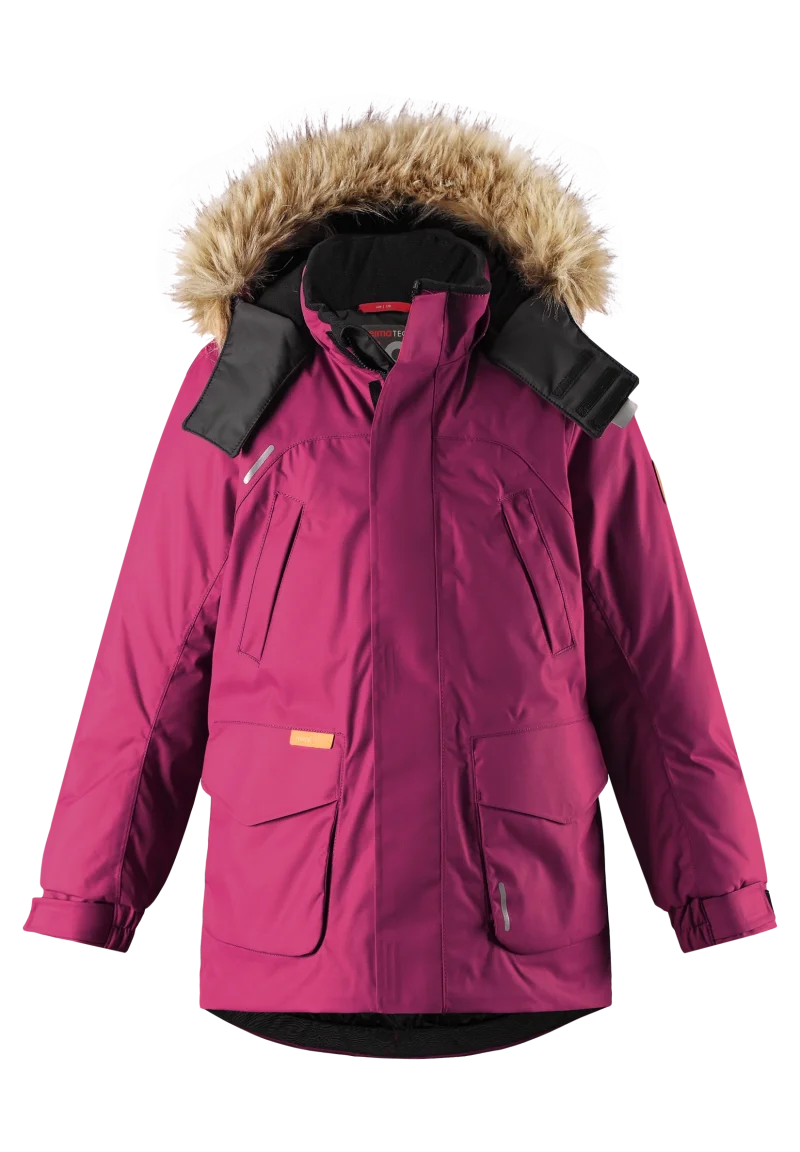 Denne klassiske og varme dunjakke passer til enhver lejlighed og holder aktive friluftseventyrere varme og tørre. Den varme dunjakke til større børn er fremstillet i et vindtæt materiale, som desuden er 100 % vandtæt. Alle sømmene i denne flotte jakke er tapede og vandtætte for at give maksimal komfort, når man leger udenfor om vinteren – uanset hvordan vejret er. Denne længere model kan ved behov justeres både i taljen og den nedre kant for at sikre en god og individuel pasform. Den aftagelige hætte beskytter mod kølige vindstød, men er også sikker ved leg i det fri. Hætten er fastgjort med trykknapper og rykkes nemt af, hvis den hænger fast i noget. For at fuldende det trendy look er hætten udstyret med en elegant aftagelig kant i imiteret pels. De mange lommer kan rumme de vigtigste småting og ser desuden knaldgodt ud. Bemærk den smarte uundværlige løkke der gemmer sig under lommen – sæt dit barns favorit refleks fast i løkken, for at få ekstra synlighed og sikkerhed! Denne supervarme vinterjakke er utroligt nem at pleje takket være den vand- og smudsafvisende overflade, og så kan den tilmed tørretumbles efter vask.