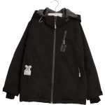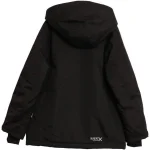 Jakke i åndbart og vandtæt teknisk materiale med aftagelig foret hætte, lommer i siderne og på venstre bryst. Reflekterende detaljer.