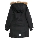 Varm parkajakke med justerbar elastiksnor i taljen i vind- og vandtæt funktionsmateriale. Jakken har plysfoer og længde, som gør pasformen praktisk og ekstra varm. Den har aftagelig hætte med kunstpels, der nemt kan knappes af, ligesom kunstpelsen kan knappes af hætten. Jakken har unikke sidelommer, justerbar elastiksnor i bunden og ribkant i bunden af ærmet. Flere steder findes anvendelige refleksdetaljer eksempelvis vores karakteristiske elg samt refleks-logo.