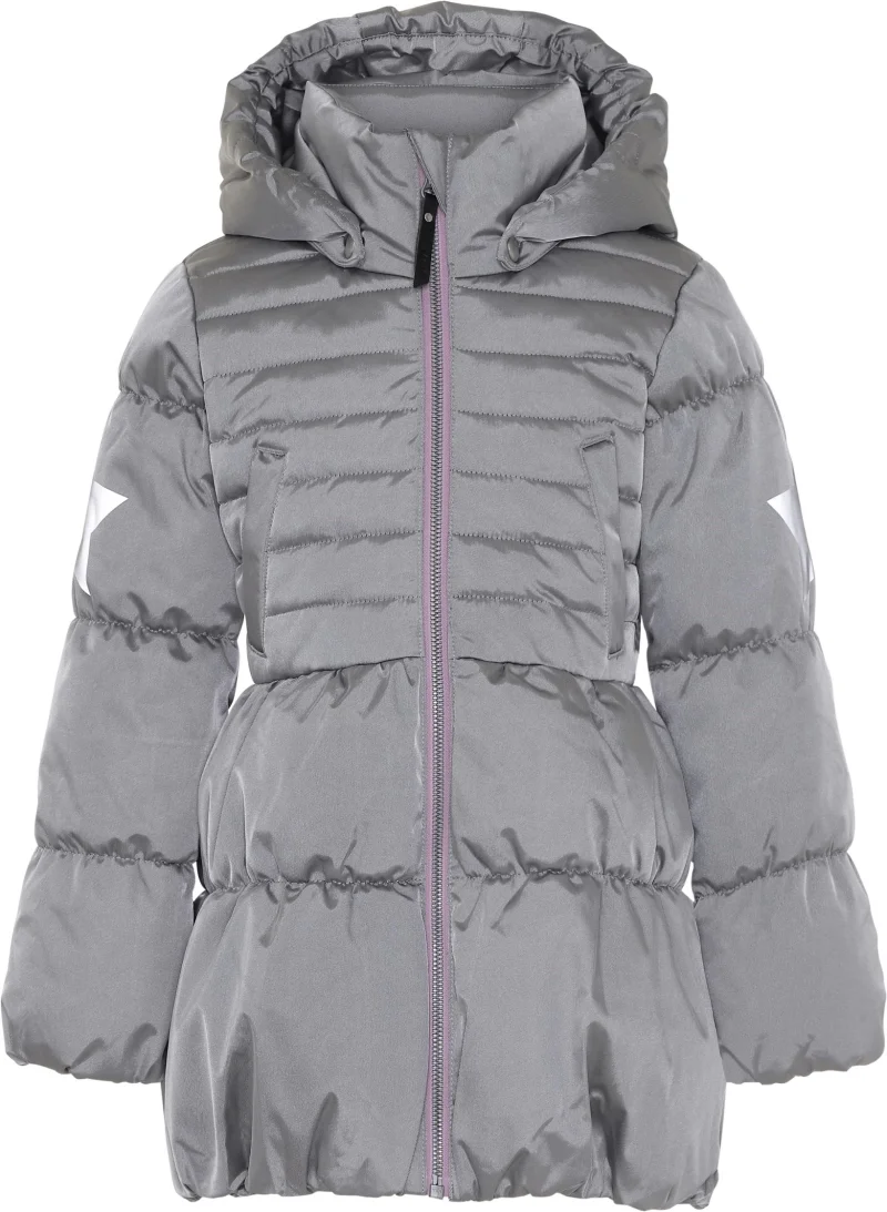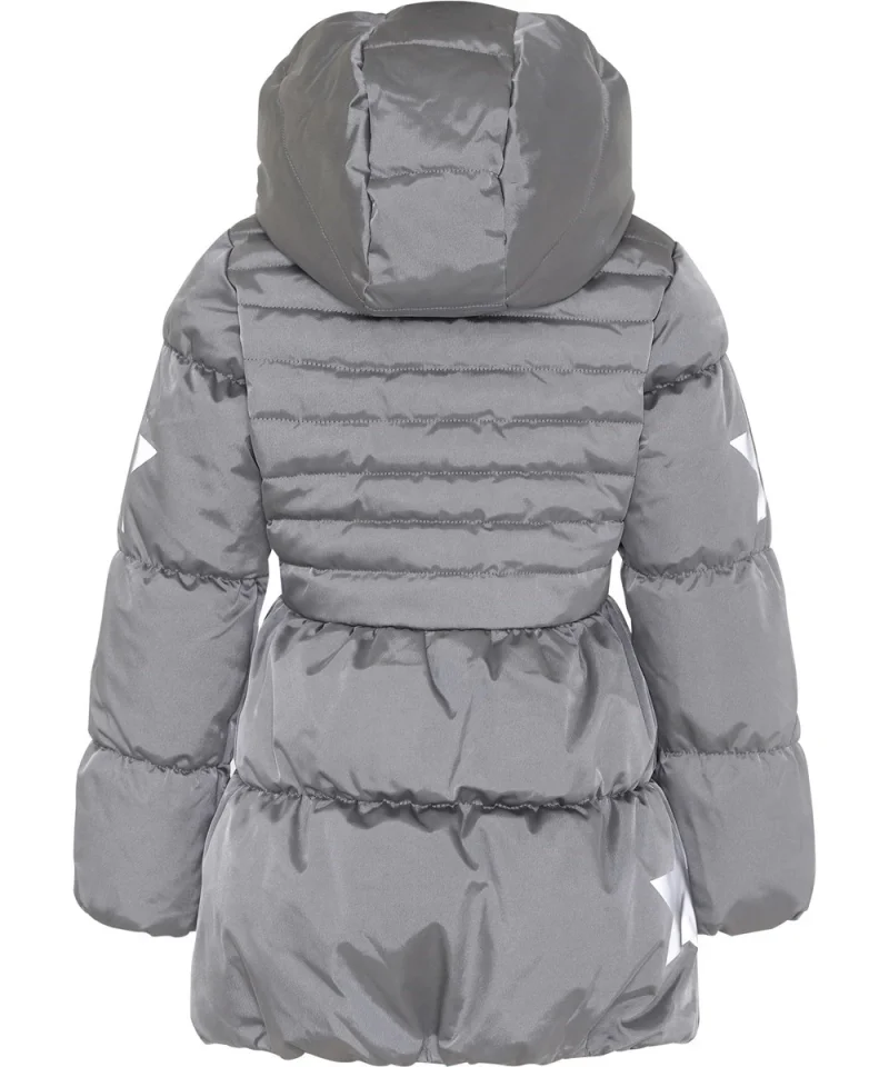 Hestia er en feminin vinterjakke i sølv farve med rosa lynlås. Jakken har aftagelig hætte, lynlås med langs fronten, lommer over taljen, samt Molo's velkendte stjernerefleks på begge overarme samt bagpå. Derudover er jakken håndforet med pearl padding, som giver ekstra blødhed og har en dunlignende følelse. Ydermaterialet har en vandafvisende PFC-fri imprægnering (indeholder f.eks. ikke PFOS, PFOA og lignende).
