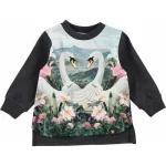Langærmet mørkegrå t-shirt med digitalprintede svaner på fronten samt rib ved hals og ærmeafslutning. T-shirten åbnes og lukkes let med trykknapper ved halsen. Dette produkt er Oeko-Tex certificeret.