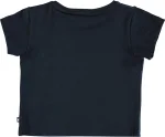 Kortærmet, mørkeblå baby t-shirt med en guldfarvet fodbold printet på fronten. Trykknapper ved halsåbning gør det let at få t-shirten af og på. Dette produkt er Oeko-Tex certificeret.