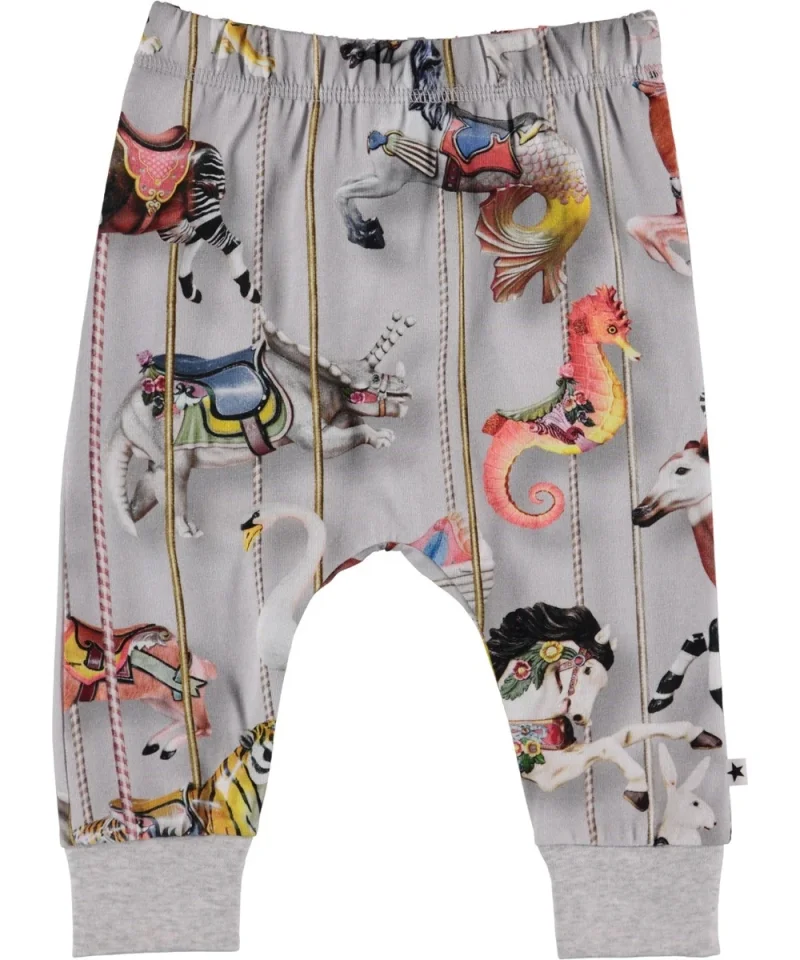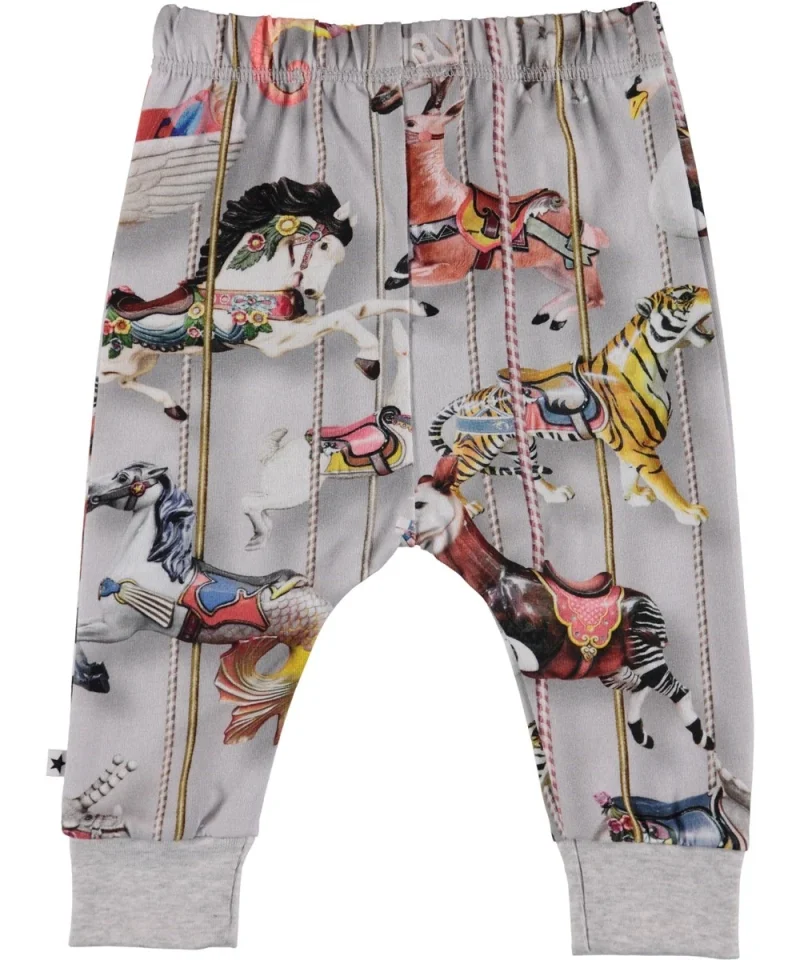 Simone er par baby sweatpants i Molo's "Carousel" print. Simone har eleastisk talje og rib ved benafslutning, som sikrer et behageligt fit. Dette produkt er Oeko-Tex certificeret.