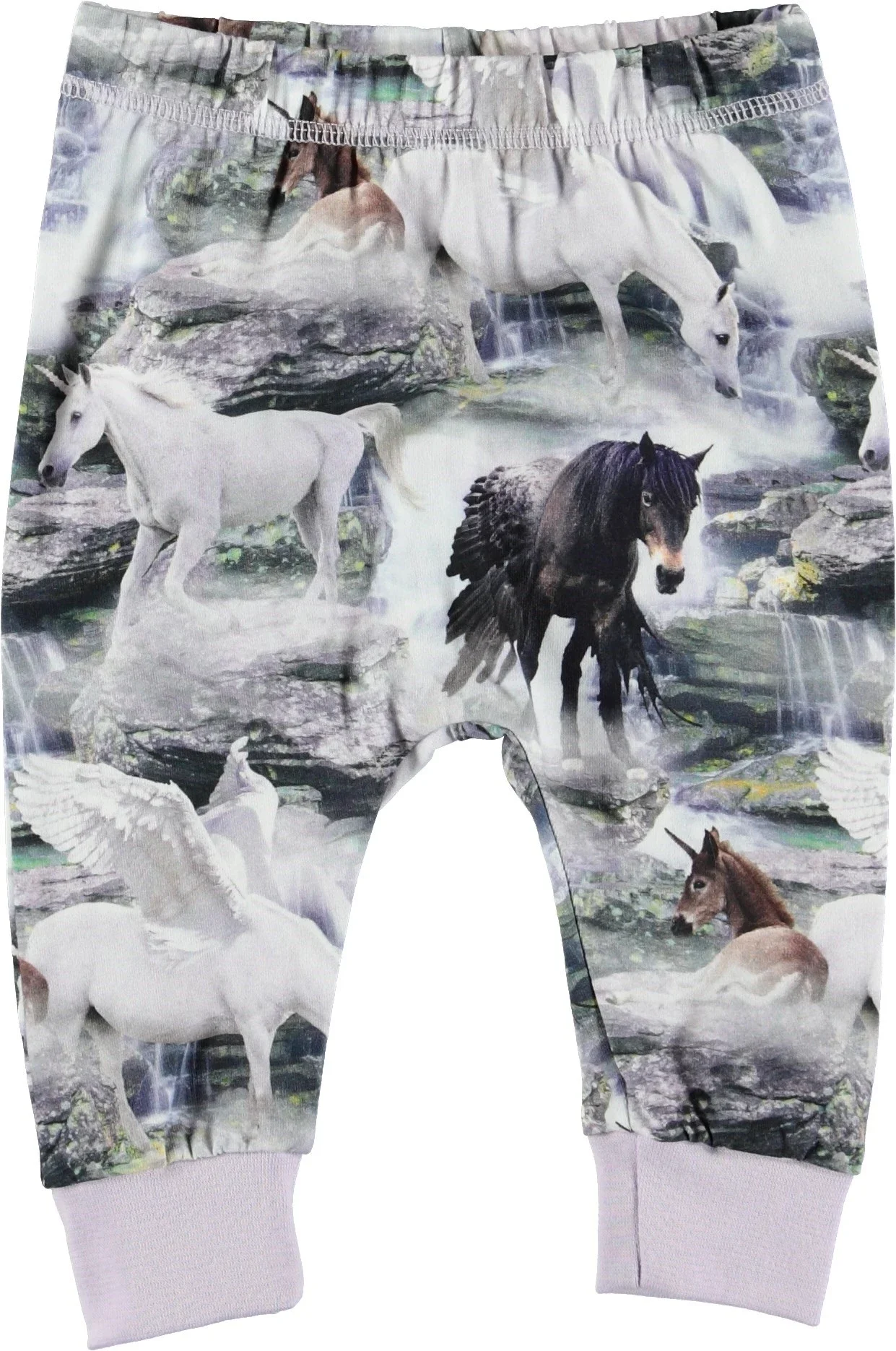 Simone er par baby sweatpants i Molo's "Wild Horses" print. Simone har eleastisk talje og rib ved benafslutning, som sikrer et behageligt fit. Dette produkt er Oeko-Tex certificeret.