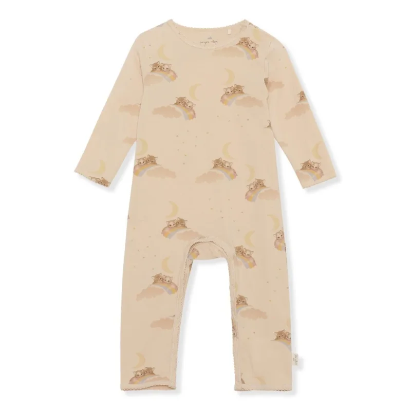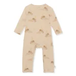 Sparkedragt i 95 procent økologisk bomuld og 5 procent elastan, med en smule stretch. Designet med trykknapper ved skulderen og ved skridtet/benene, hvilket gør den let at tage af og på.
