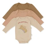 Blød langærmet body i 95 procent økologisk bomuld og 5 procent elastan, med en smule stretch. Designet med praktisk kuverthals og trykknapper i skridtet, hvilket gør den let at tage af og på.