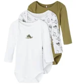 Name It - Body 3-pak Lange ærmer - 100% Øko-bomuld - Loden Dino