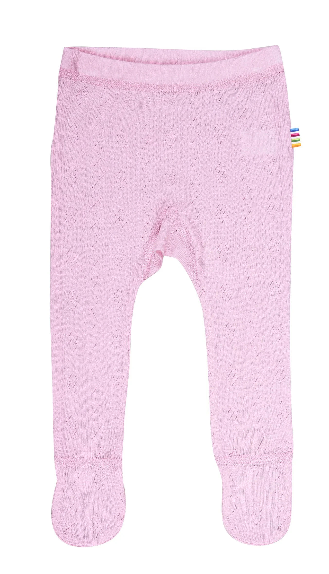 Lækre bukser i uld/silke fra Joha, med fint hulmønster og søde blondekanter langs buksekanten. Bukserne er med elastik i taljen.