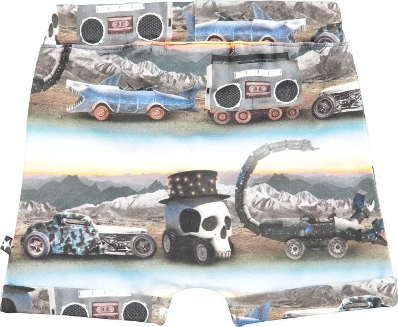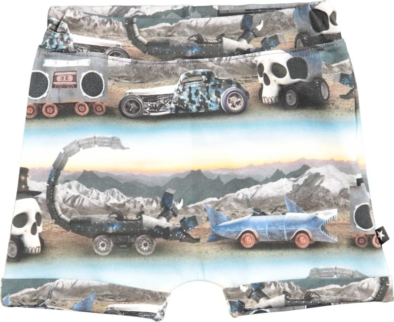 Baby sweat shorts med digitalprintede robotbiler og ombuk forneden. Det bløde materiale og den elastiske talje sikrer komfort og en god pasform. Dette produkt er Oeko-Tex certificeret.