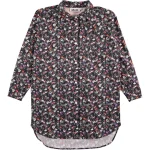 Langærmet skjortekjole med digitalprintede blomster og knapper ned langs fronten samt ved ærmeafslutning.