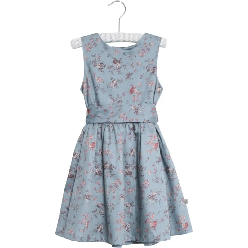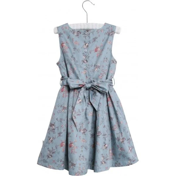 Ærmeløs kjole i blød bomuld med et vid skørt og unikt blomsterprint. Den har bindebånd i taljen, så man kan lave en fin sløjfe på ryggen. Kjolen har knaplukning bagpå, så den er nemmere at komme i.