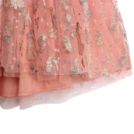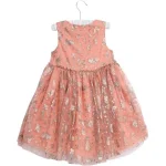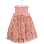 Bred ærmeløs kjole i tyl med glitrende print af Snehvide. Kjolen har en rynket søm over brystet og er længere bagpå, hvor den også lukkes med en fin lille knaplukning.