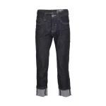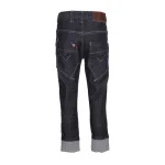 Blå jeans i vasken Indigo med opsmøg på benet og pinched detaljer ved hofterne. Baglommerne er placeret lavt, hvilket giver et casual look. Bukserne har justerbar talje (til og med størrelse 128) samt trykknap til lukning, lommer og bæltestropper.