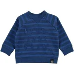 Langærmet blå sweatshirt med blåmelerede striber, raglanærmer og fine detaljer ved halsen. Kommer let over hovedet med trykknapper ved halsen.