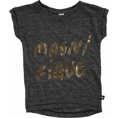 Kortærmet t-shirt med rund hals, synlige stikninger, guldprintede bogstaver på fronten samt afrundede kanter forneden for et afslappet udtryk.